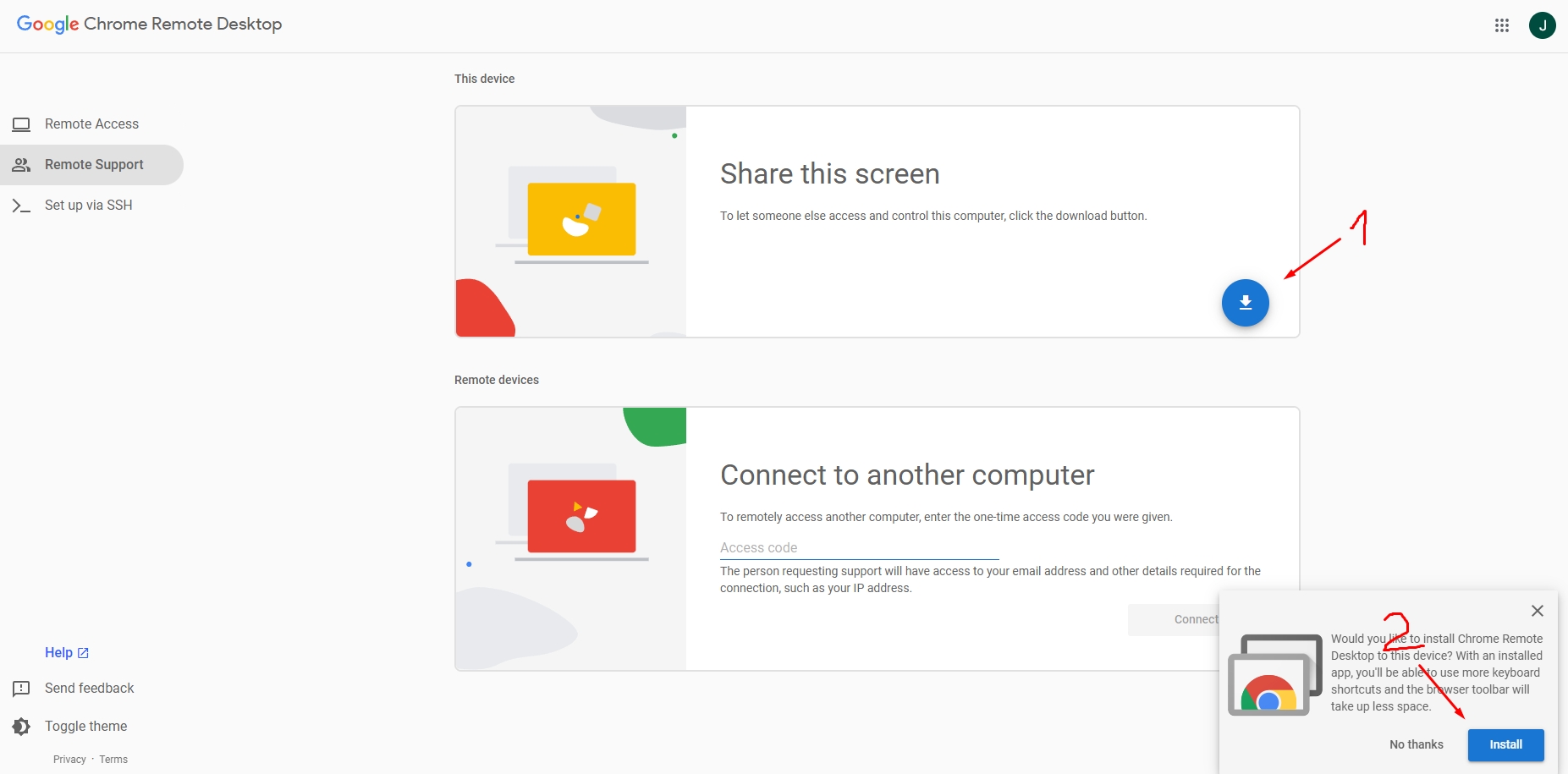 Bạn cũng có thể yêu cầu OnneChan gặp IT, và để bộ phận IT thuận tiện hỗ trợ từ xa, chúng tôi ưu tiên sử dụng 2 phương án kết nối vào máy bạn như sau: Chrome Remote Desktop & AnyDesk